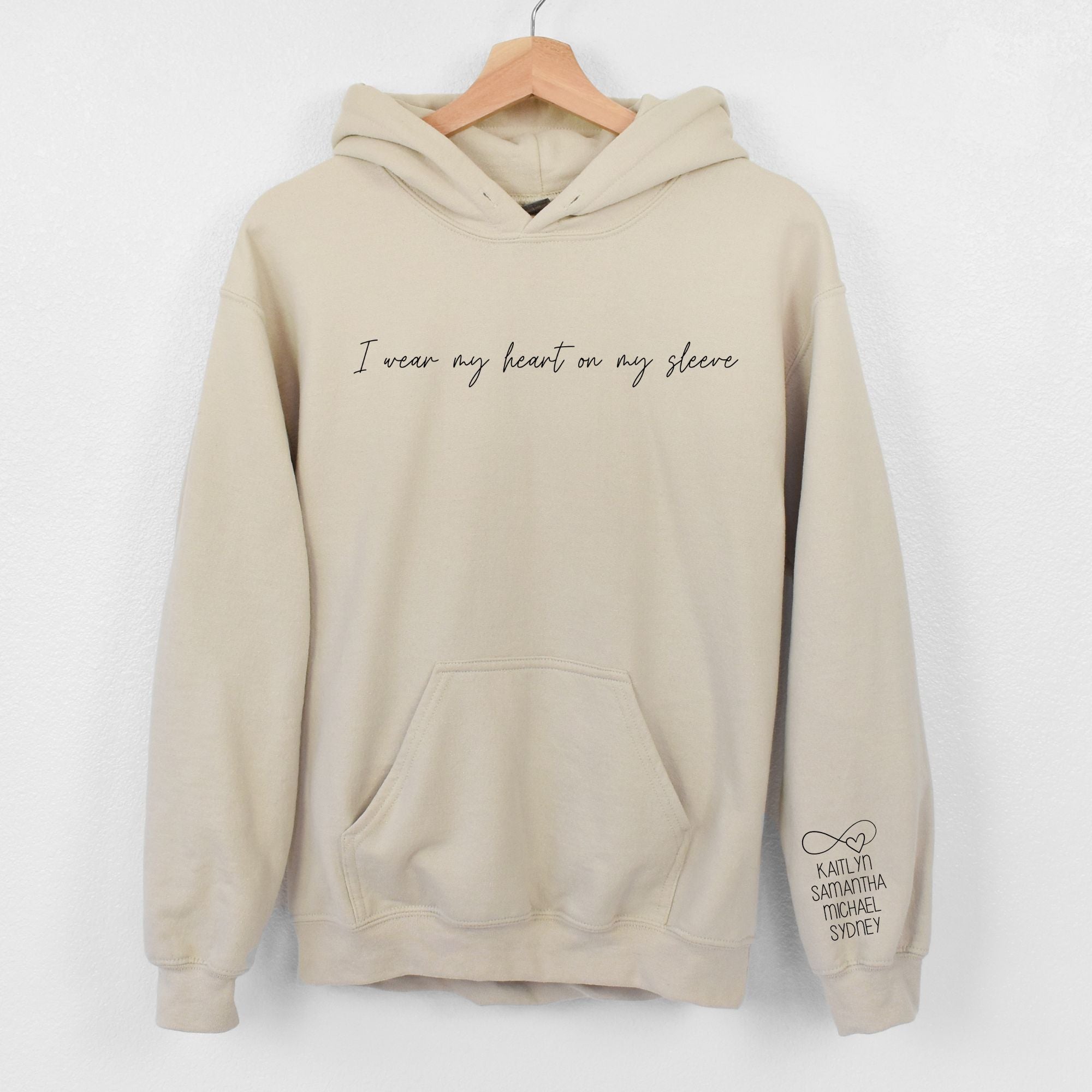 I wear my heart on my sleeve - Crewneck or Hoodie - MOM - GRANDMA