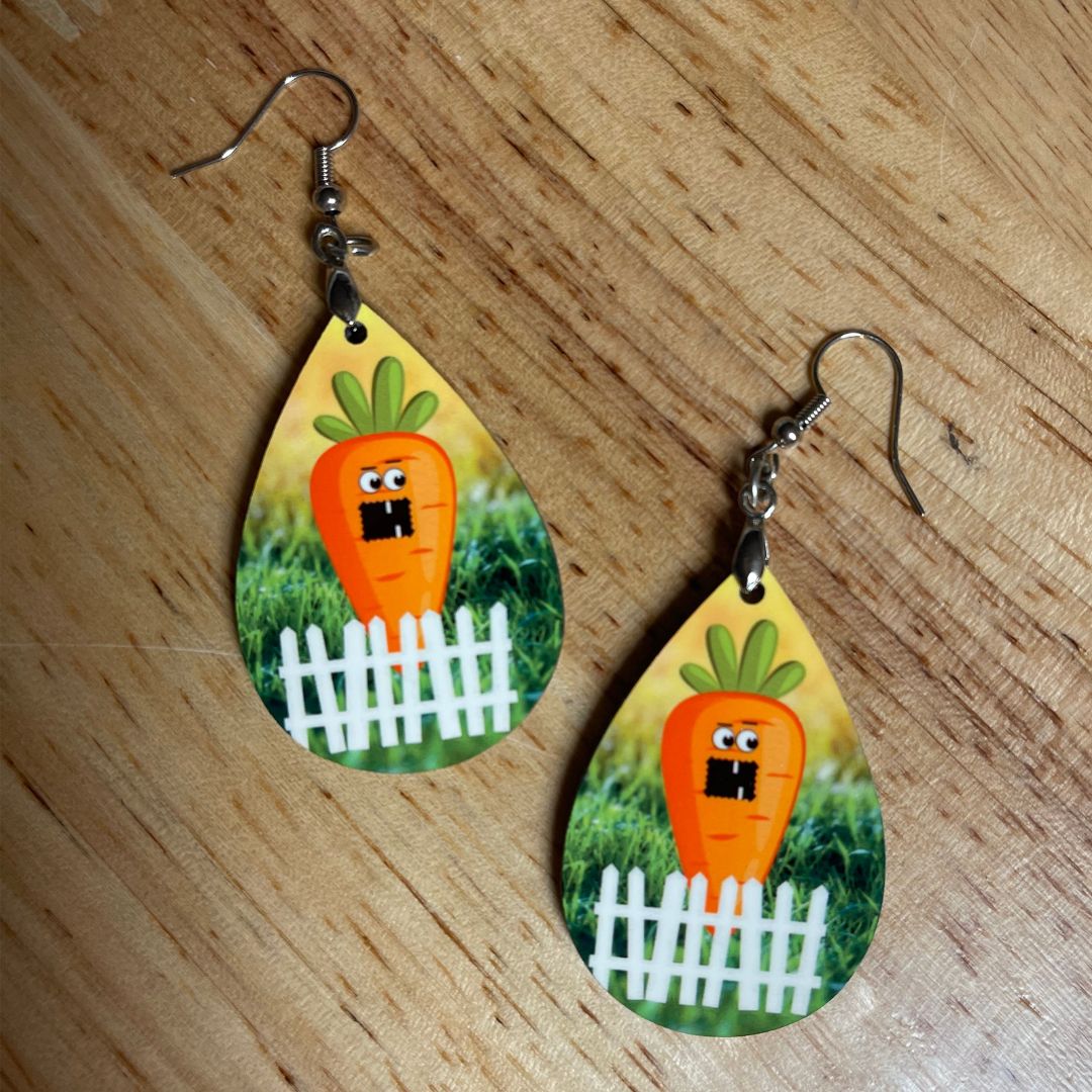 Spooky Orange Carrot Face Earrings - Teardrop shape - Choose from 10 different faces