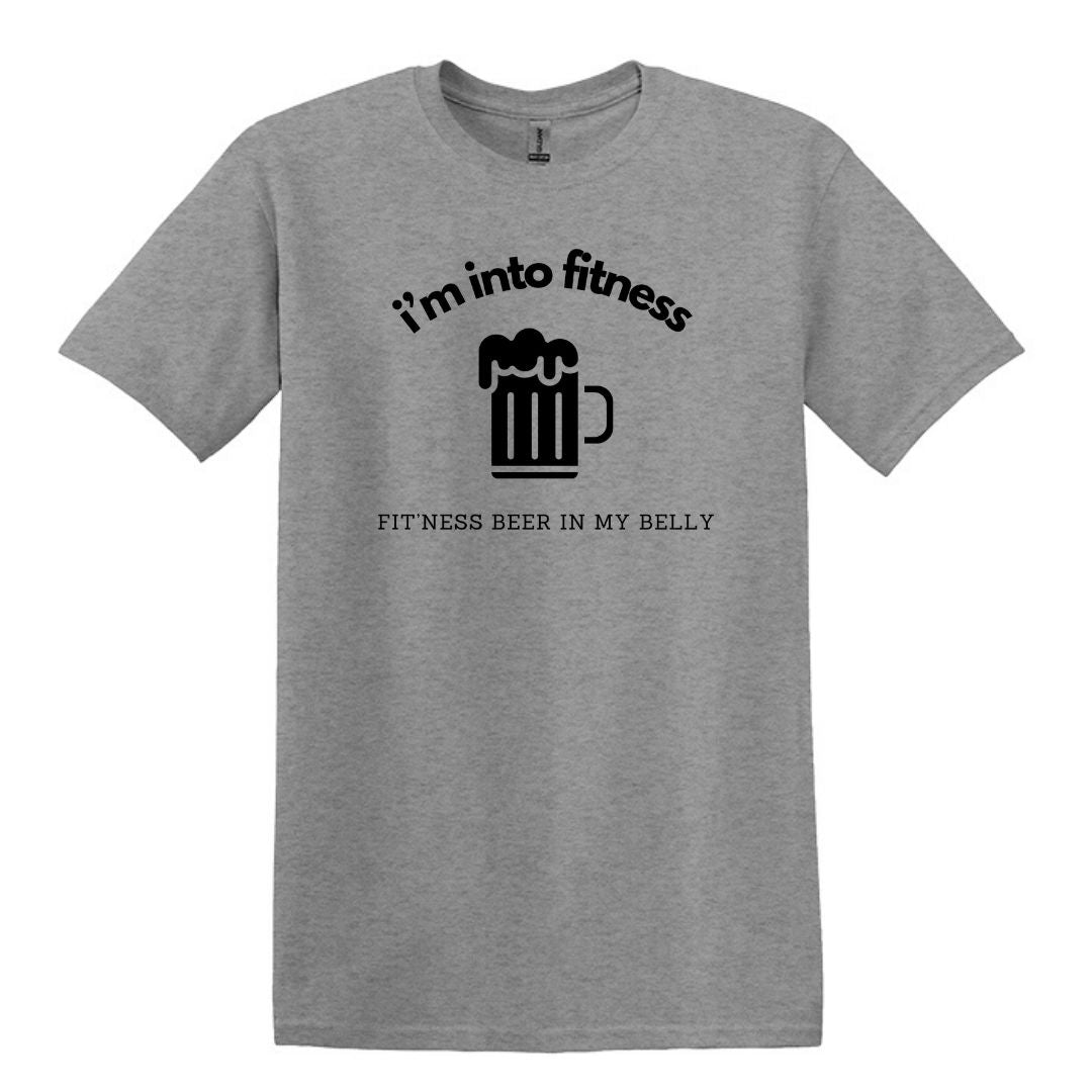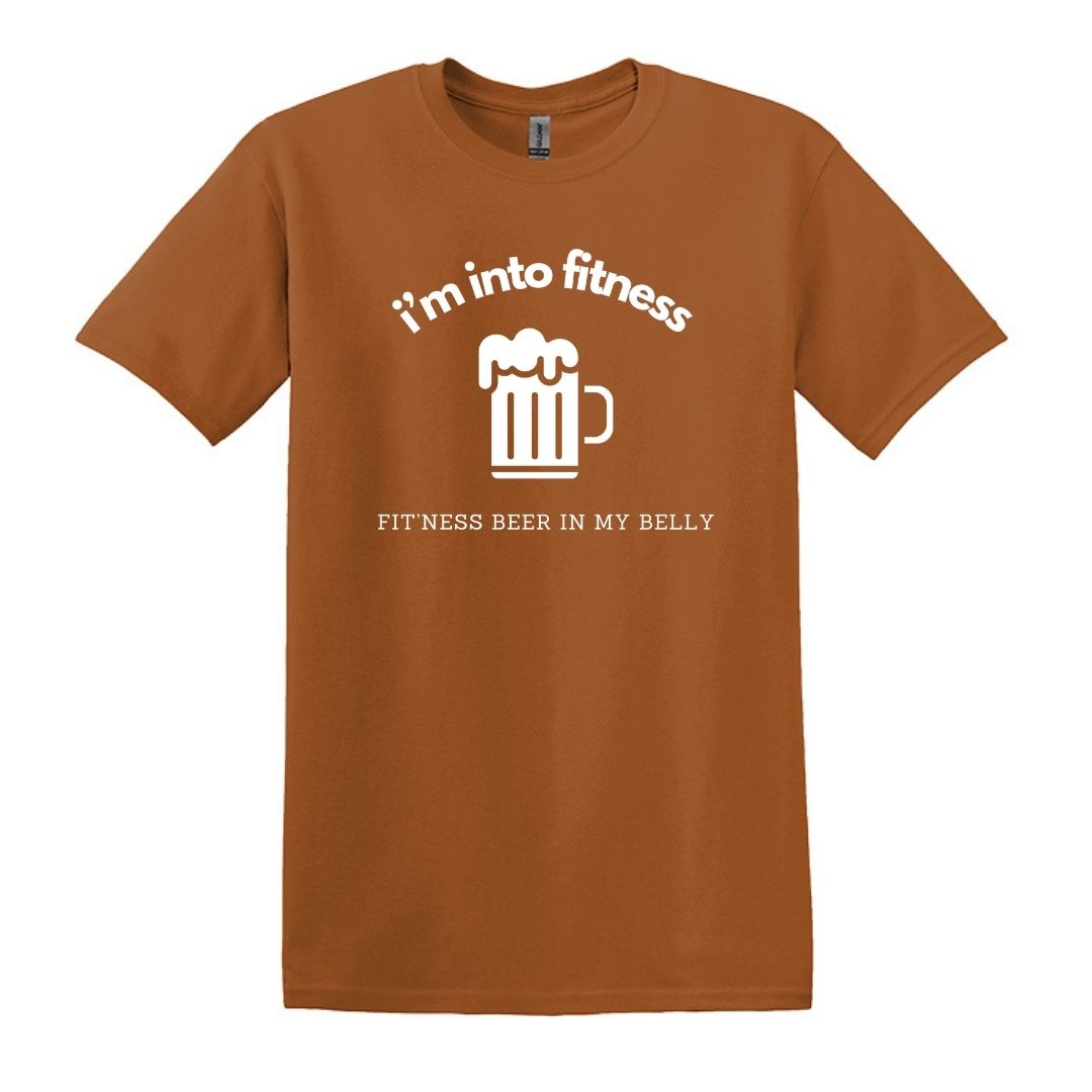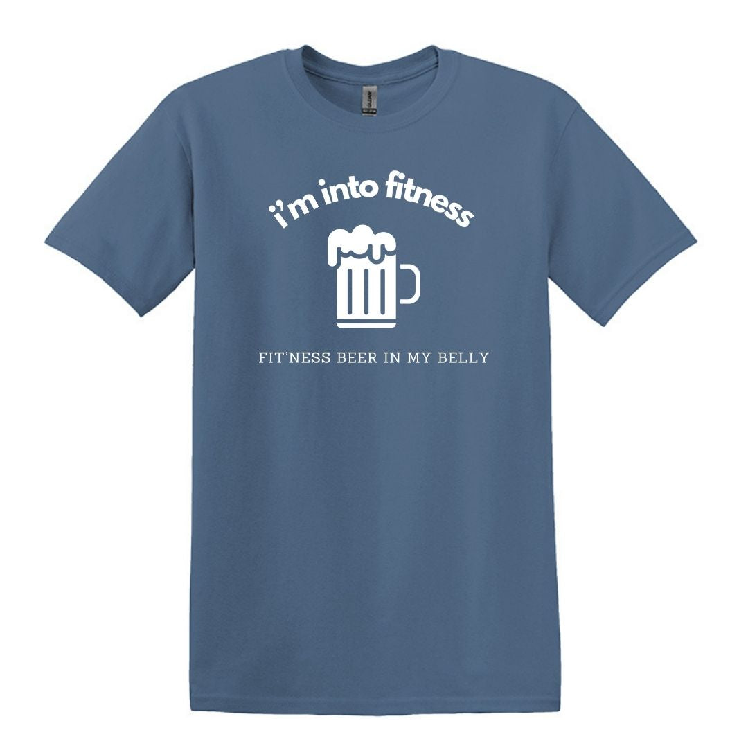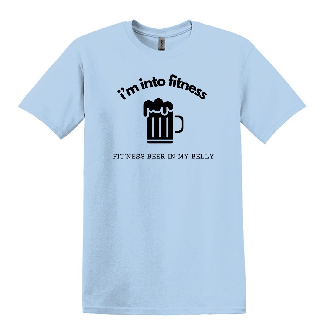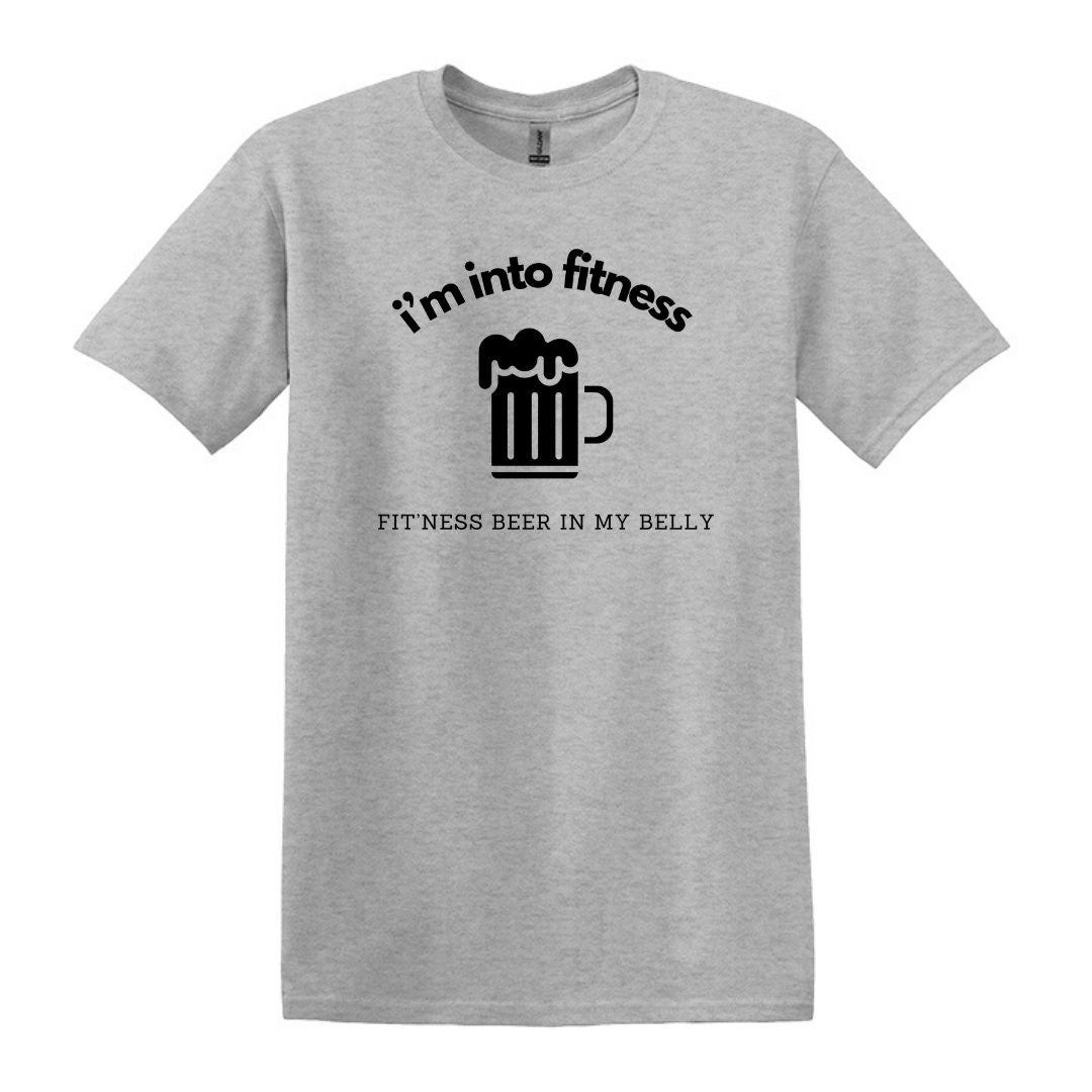 Le design présente un jeu de mots astucieux avec l'expression « Fit'ness Beer in My Belly », exprimant la joie de déguster une bière fraîche d'une manière amusante et légère. Que vous vous détendiez après une longue journée ou fêtiez entre amis, cette chemise est le choix parfait pour les amateurs de bière qui apprécient une touche d'humour.