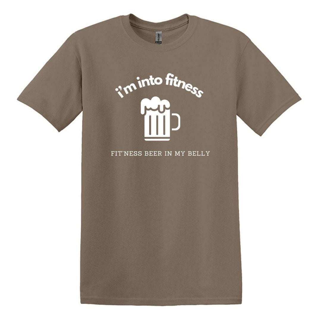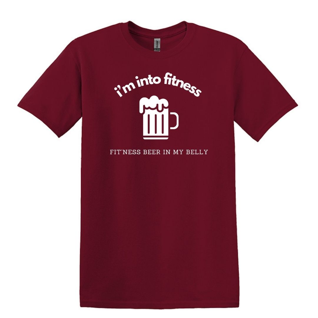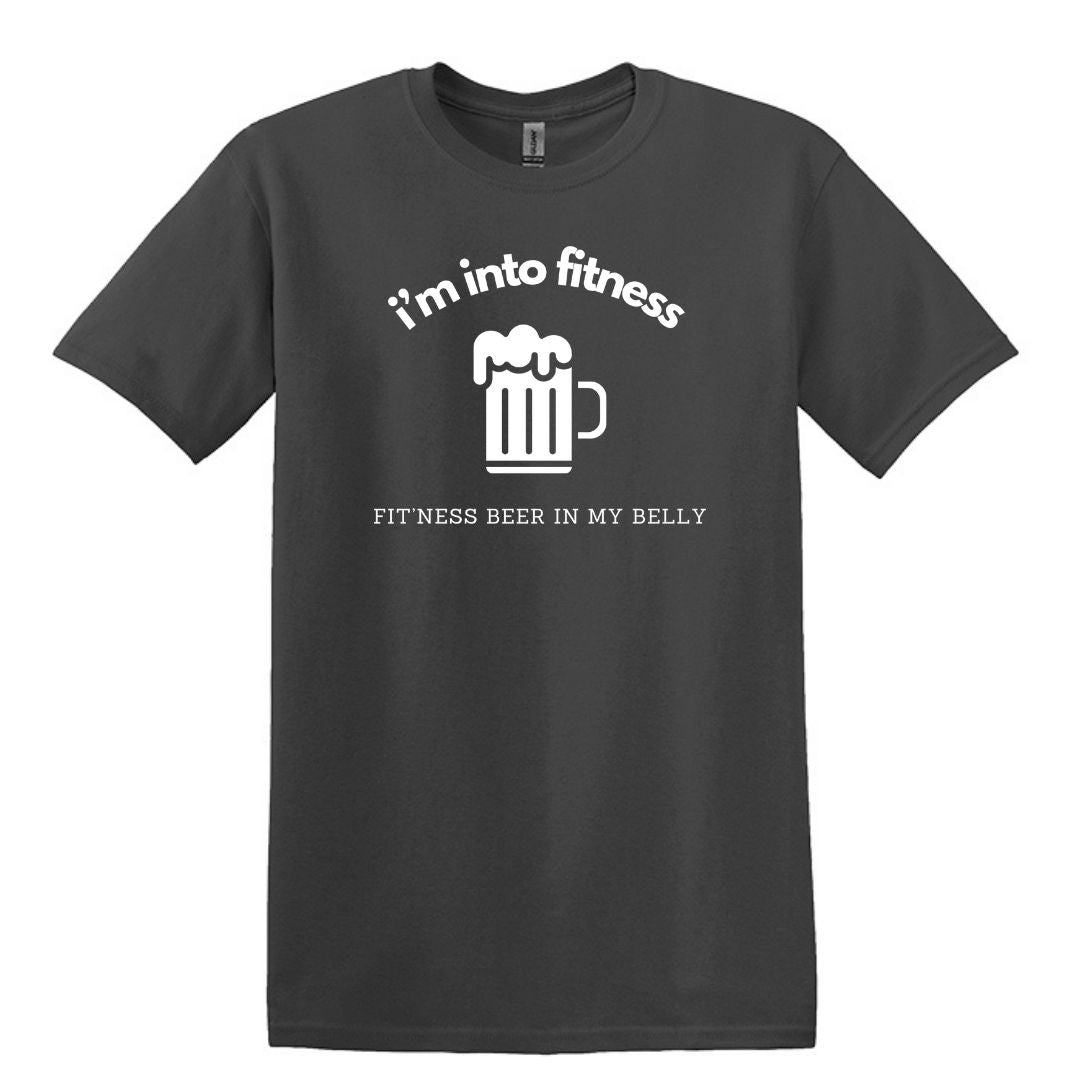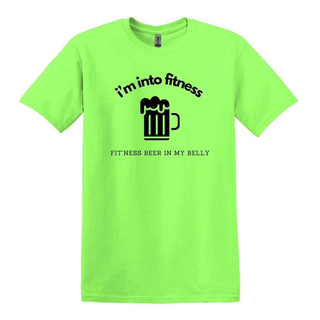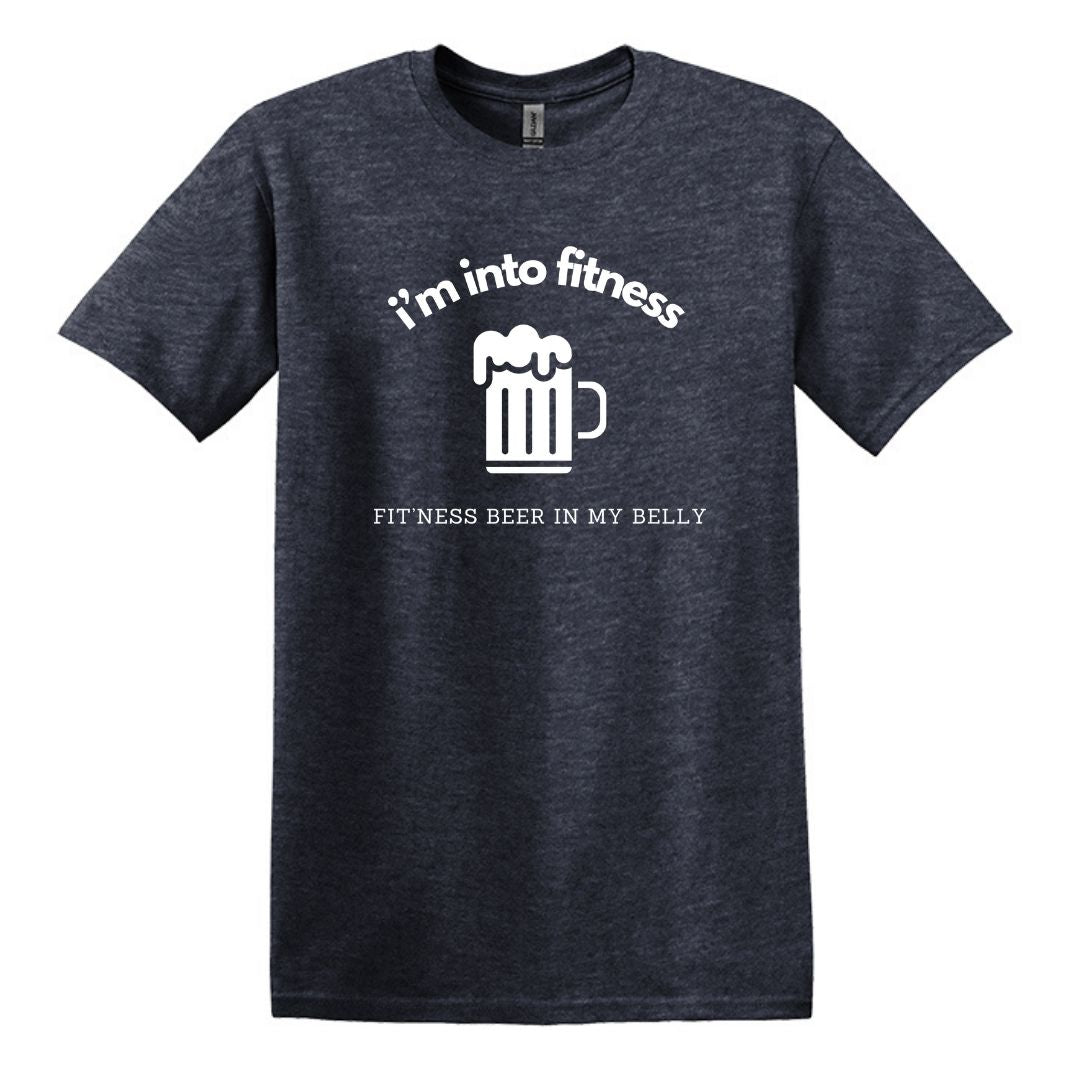 Le design présente un jeu de mots astucieux avec l'expression « Fit'ness Beer in My Belly », exprimant la joie de déguster une bière fraîche d'une manière amusante et légère. Que vous vous détendiez après une longue journée ou fêtiez entre amis, cette chemise est le choix parfait pour les amateurs de bière qui apprécient une touche d'humour.