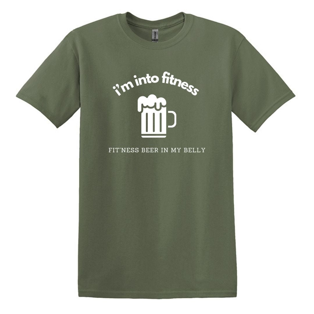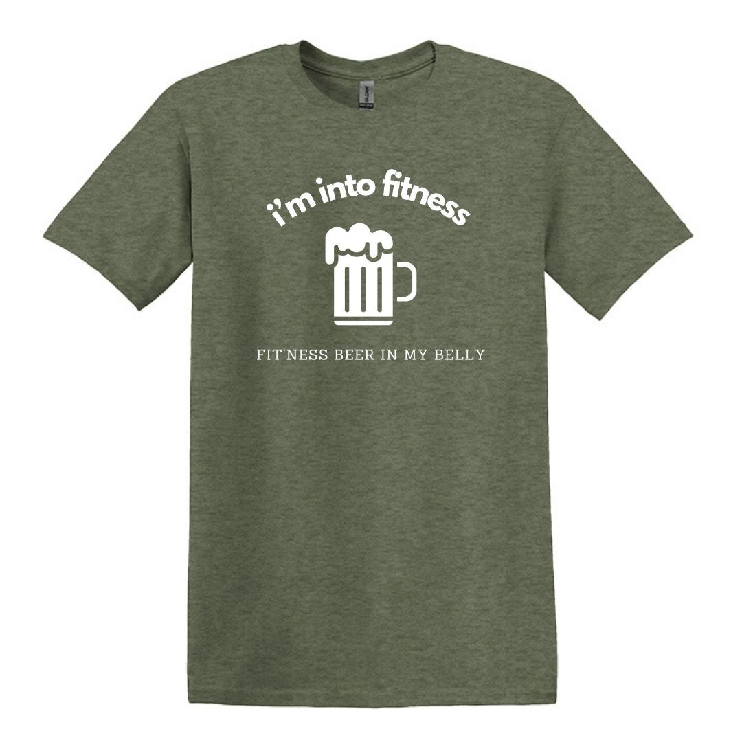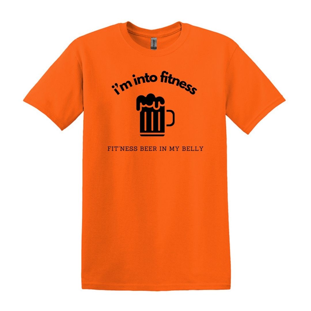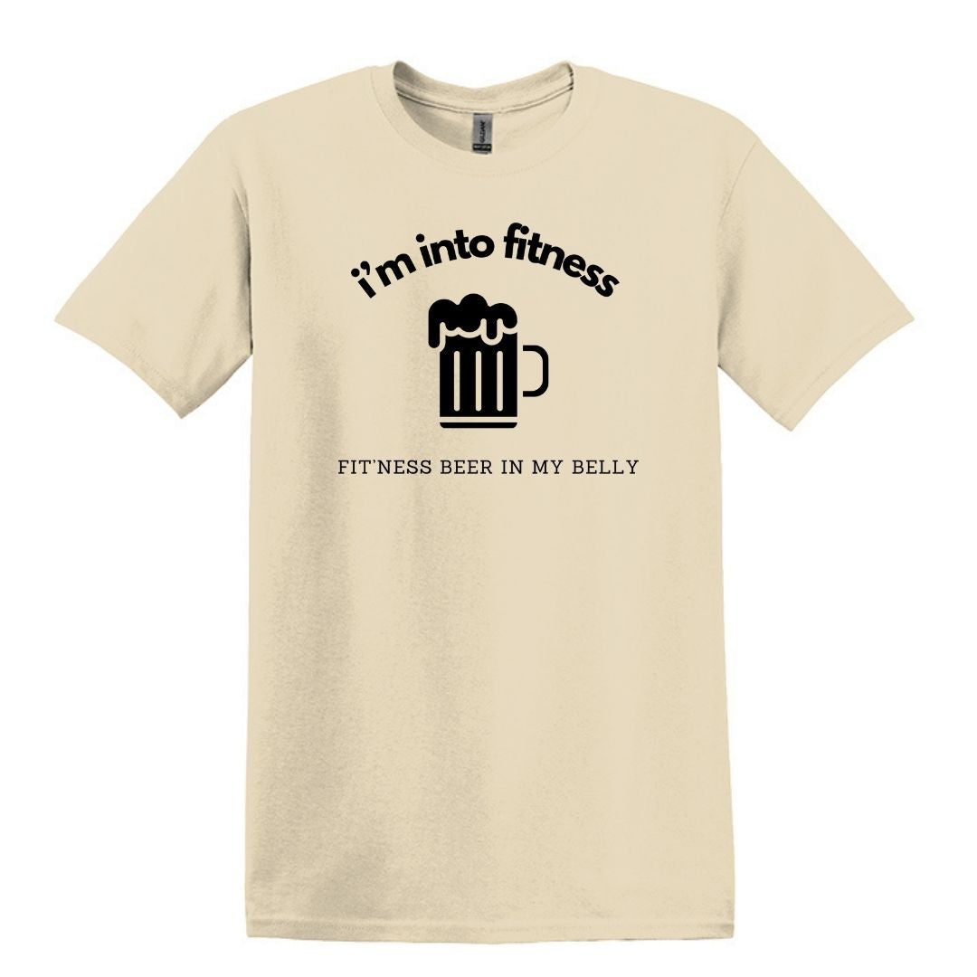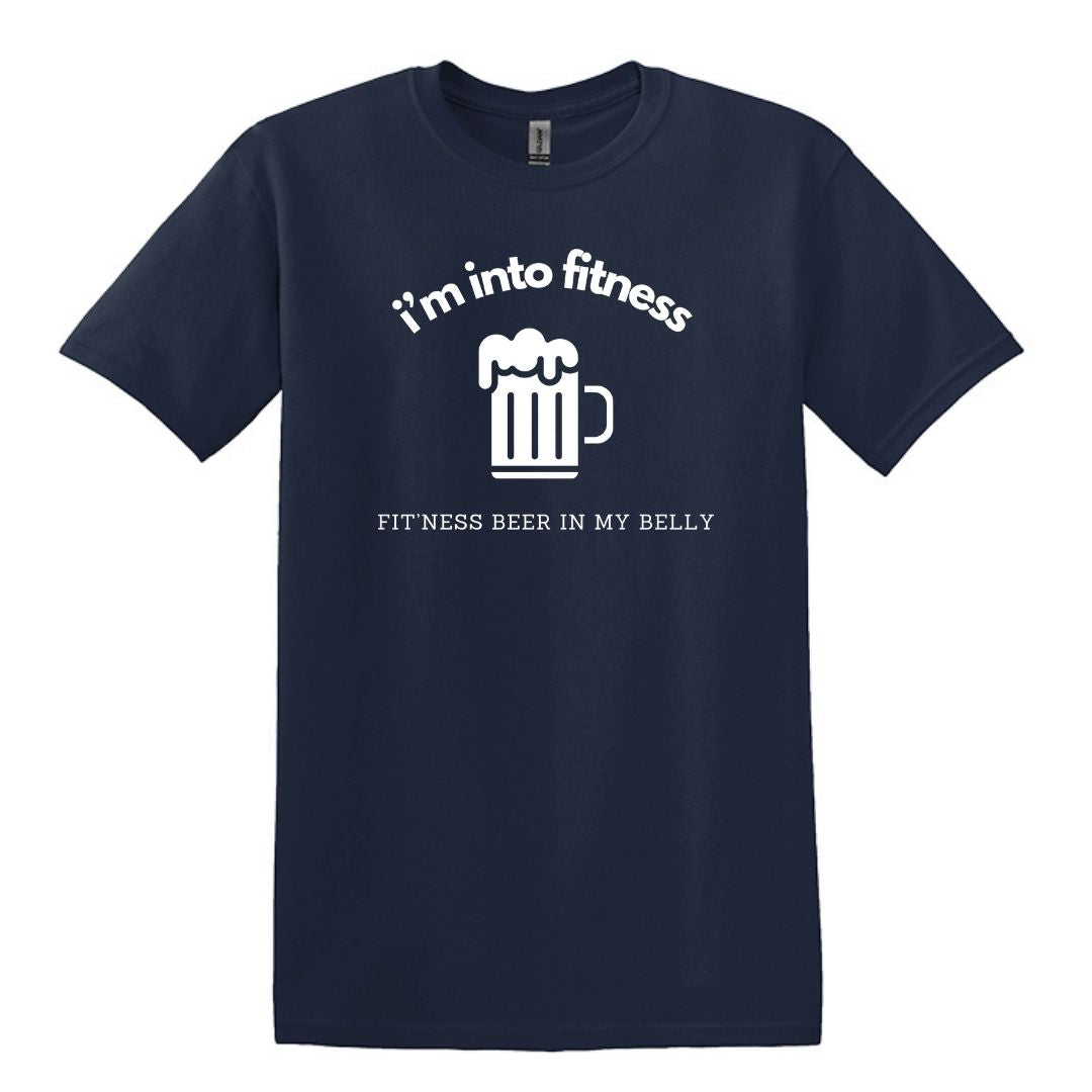 Le design présente un jeu de mots astucieux avec l'expression « Fit'ness Beer in My Belly », exprimant la joie de déguster une bière fraîche d'une manière amusante et légère. Que vous vous détendiez après une longue journée ou fêtiez entre amis, cette chemise est le choix parfait pour les amateurs de bière qui apprécient une touche d'humour.