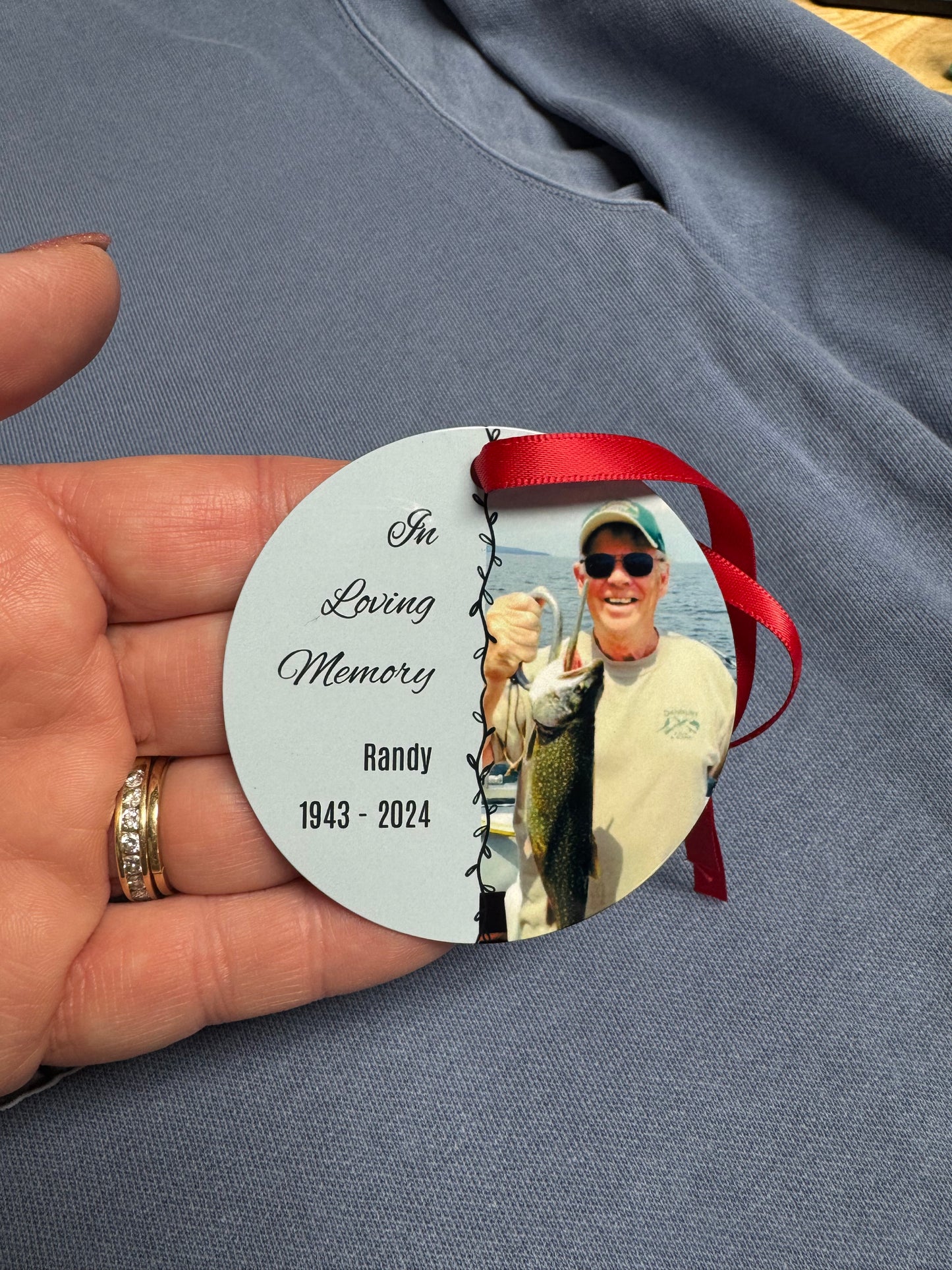 Honor the memory of a cherished loved one with the "Remembering Our Loved Ones" Memorial Ornament. Crafted from durable 2.75" aluminum, this round ornament serves as a timeless tribute that can be hung on your holiday tree, displayed year-round, or kept as a special keepsake. The sleek, shiny finish of the aluminum provides a lasting and elegant touch, while the thoughtful design evokes fond memories. Whether for a family member, friend, or pet, this ornament is the perfect way to keep their spirit close to your heart. Personalized with your loved ones' name making it a one-of-a-kind memorial. This ornament is not just a decoration; it’s a heartfelt reminder that the ones we love are always with us, in our hearts and memories.