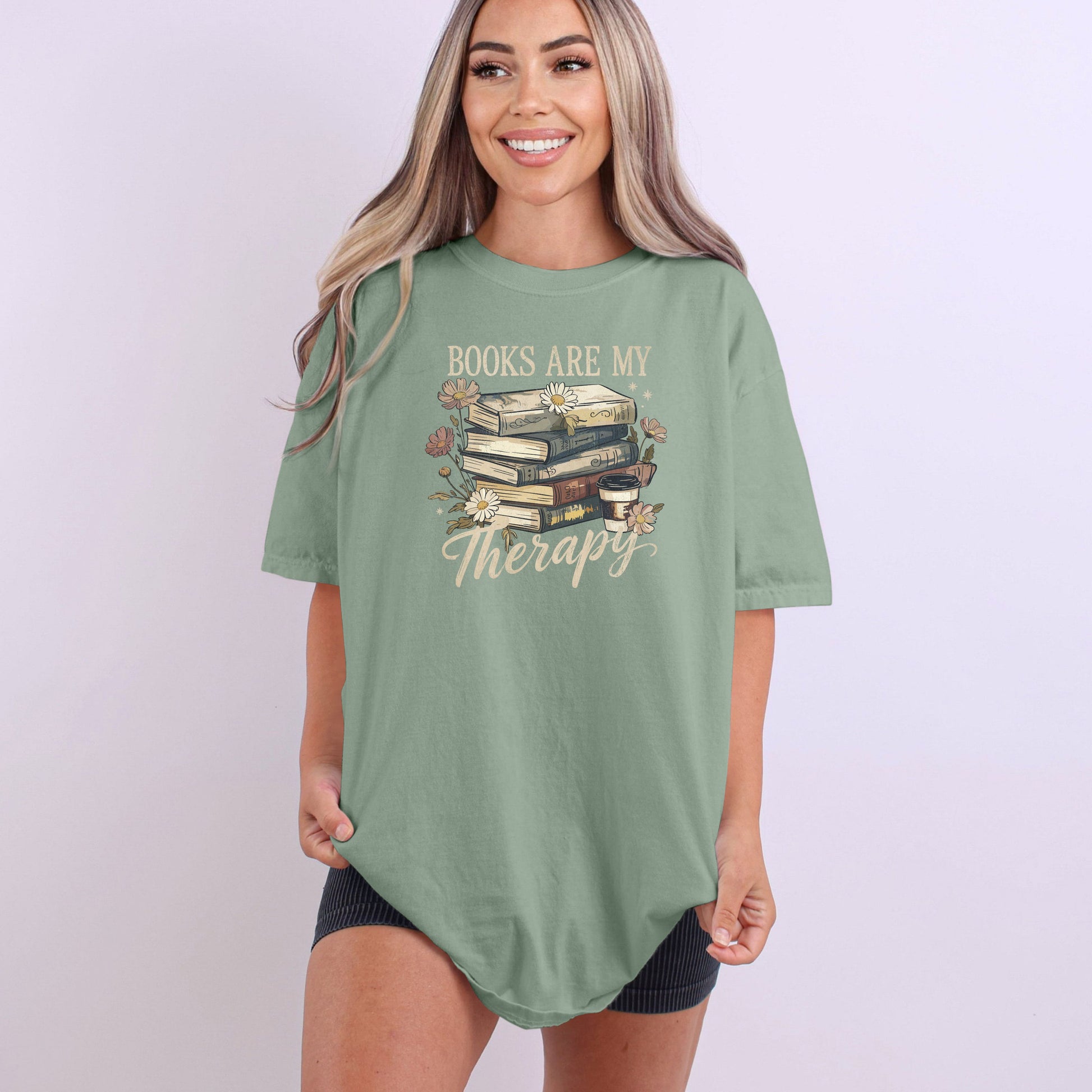 The “Books Are My Therapy” tee is made for readers who find comfort, escape, and joy between the pages. Soft, relaxed, and effortlessly cozy, this shirt is perfect for bookstore browsing, library days, or curling up with your current read and a cup of coffee.