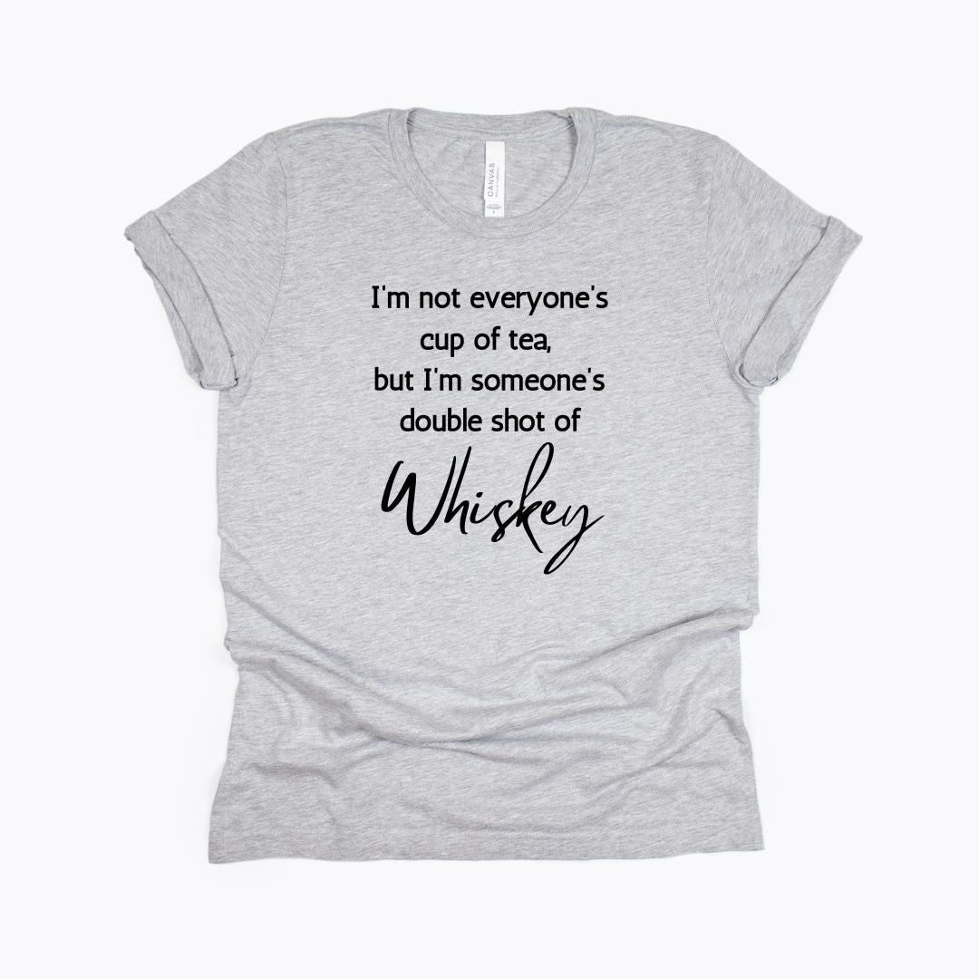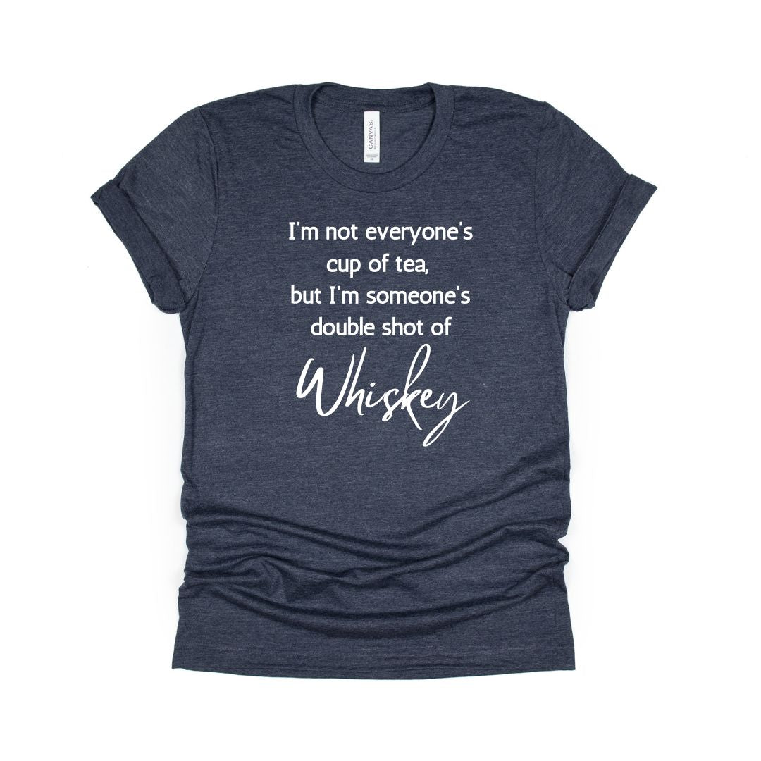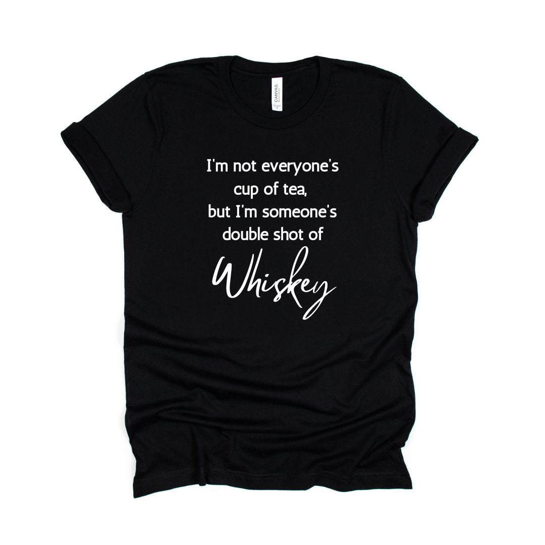 - Design: Bold, stylish graphic with the slogan "I'm Not Everyone's Cup of Tea, But I Am Someone's Double Shot of Whiskey."