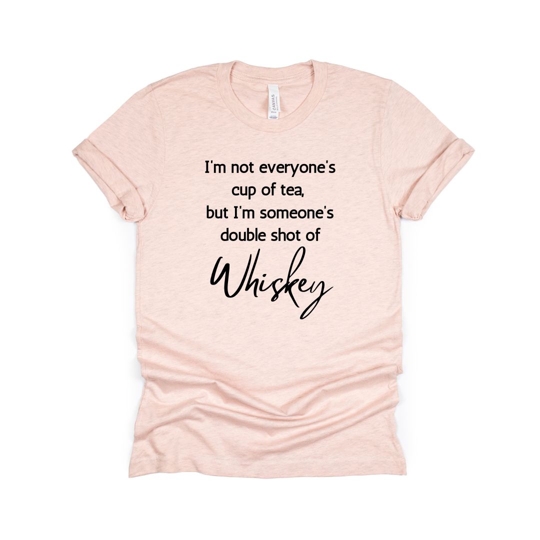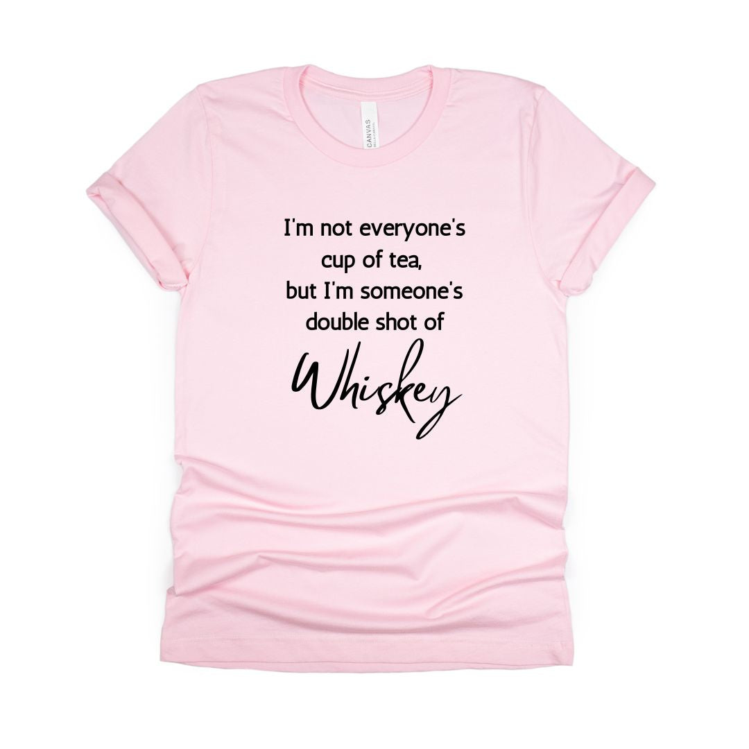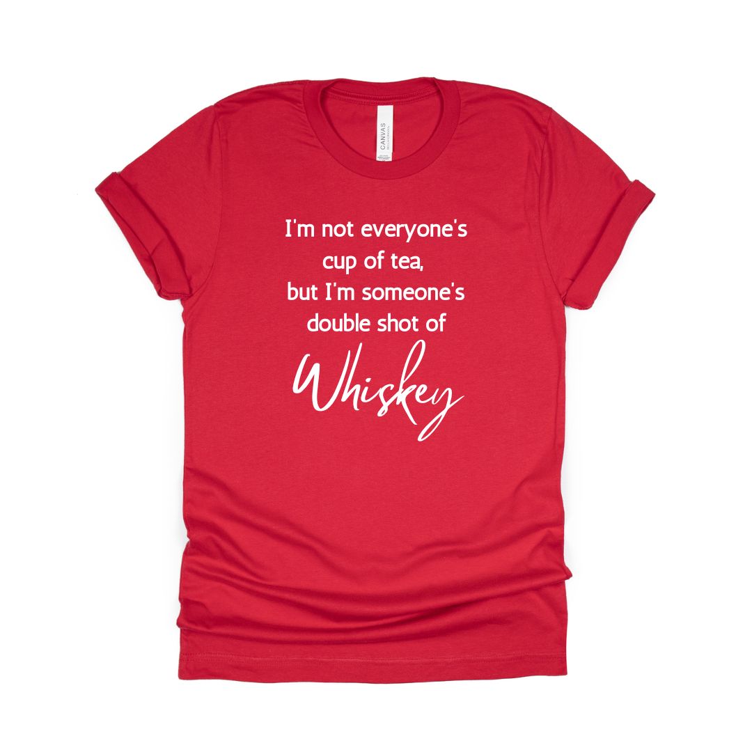 - Design: Bold, stylish graphic with the slogan "I'm Not Everyone's Cup of Tea, But I Am Someone's Double Shot of Whiskey."
