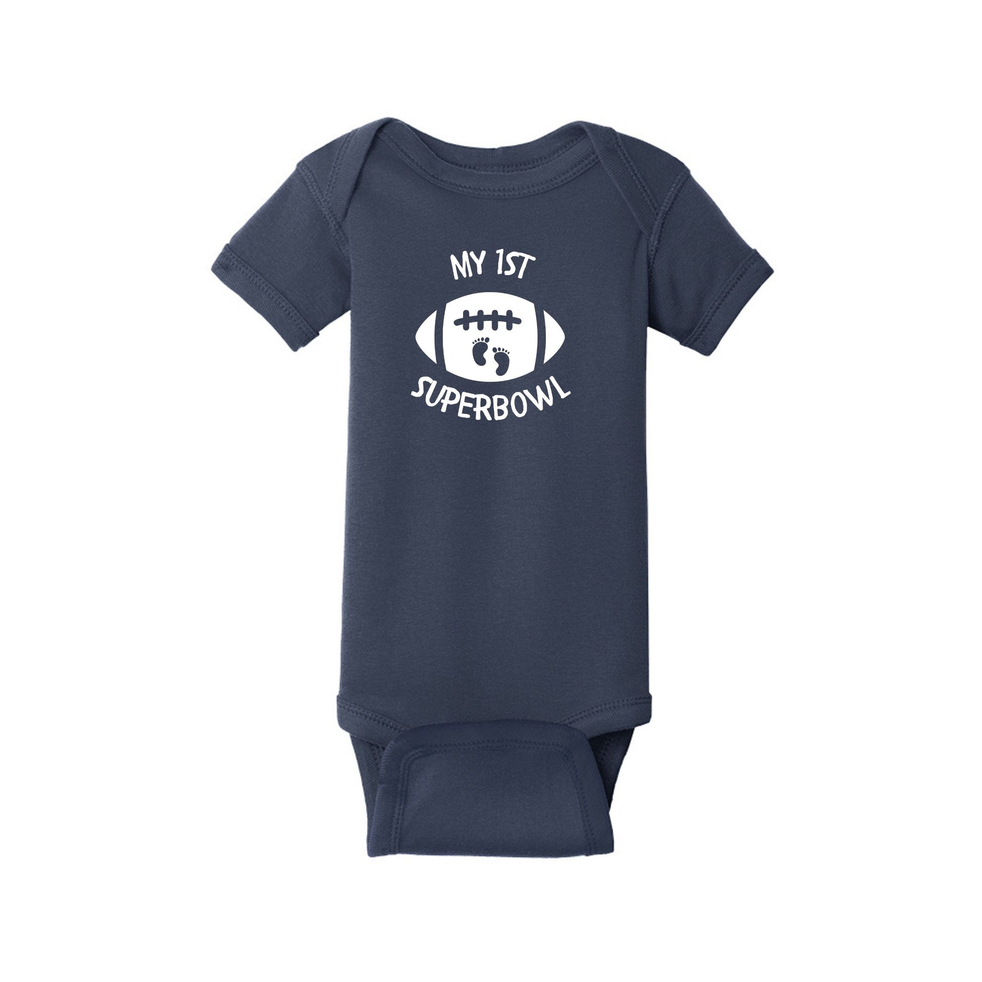 Introducing the "My First Super Bowl" Short Sleeve One-Piece for babies – because even the littlest fans deserve to join in the excitement of the big game! Crafted with comfort and cuteness in mind, this adorable onesie is the perfect way to celebrate your baby's first Super Bowl experience.