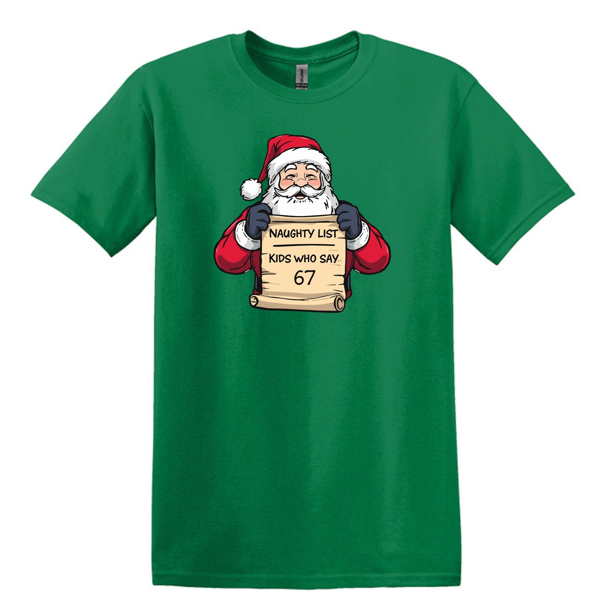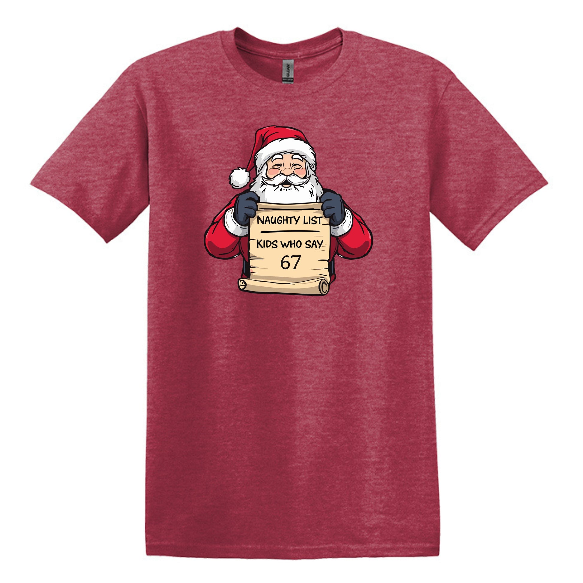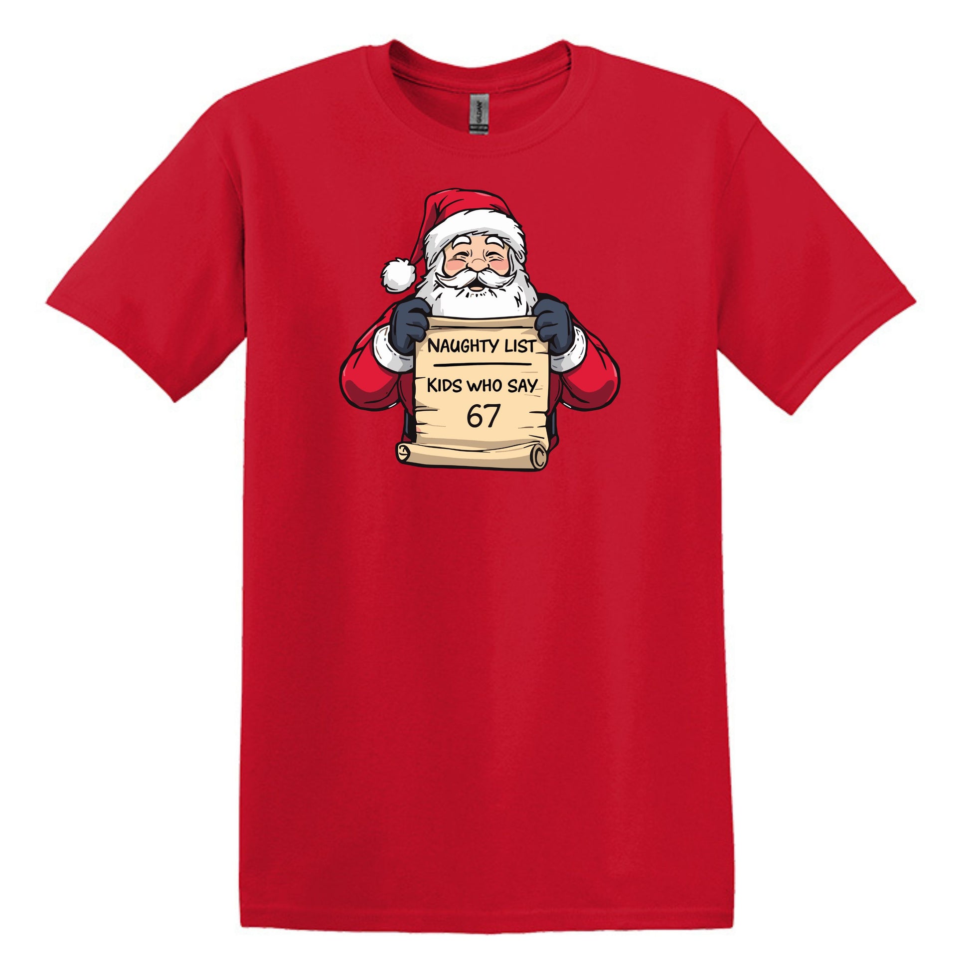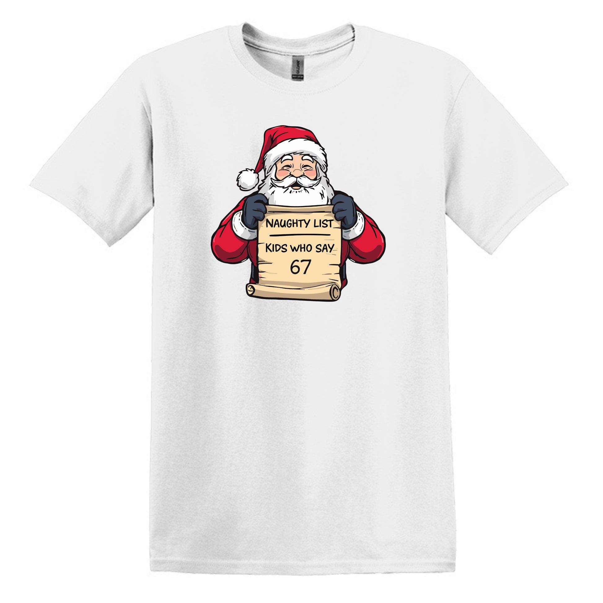 Naughty List - Kids who say "6 7" - Funny Tee or Sweatshirt featuring Santa with Naughty List Sign
