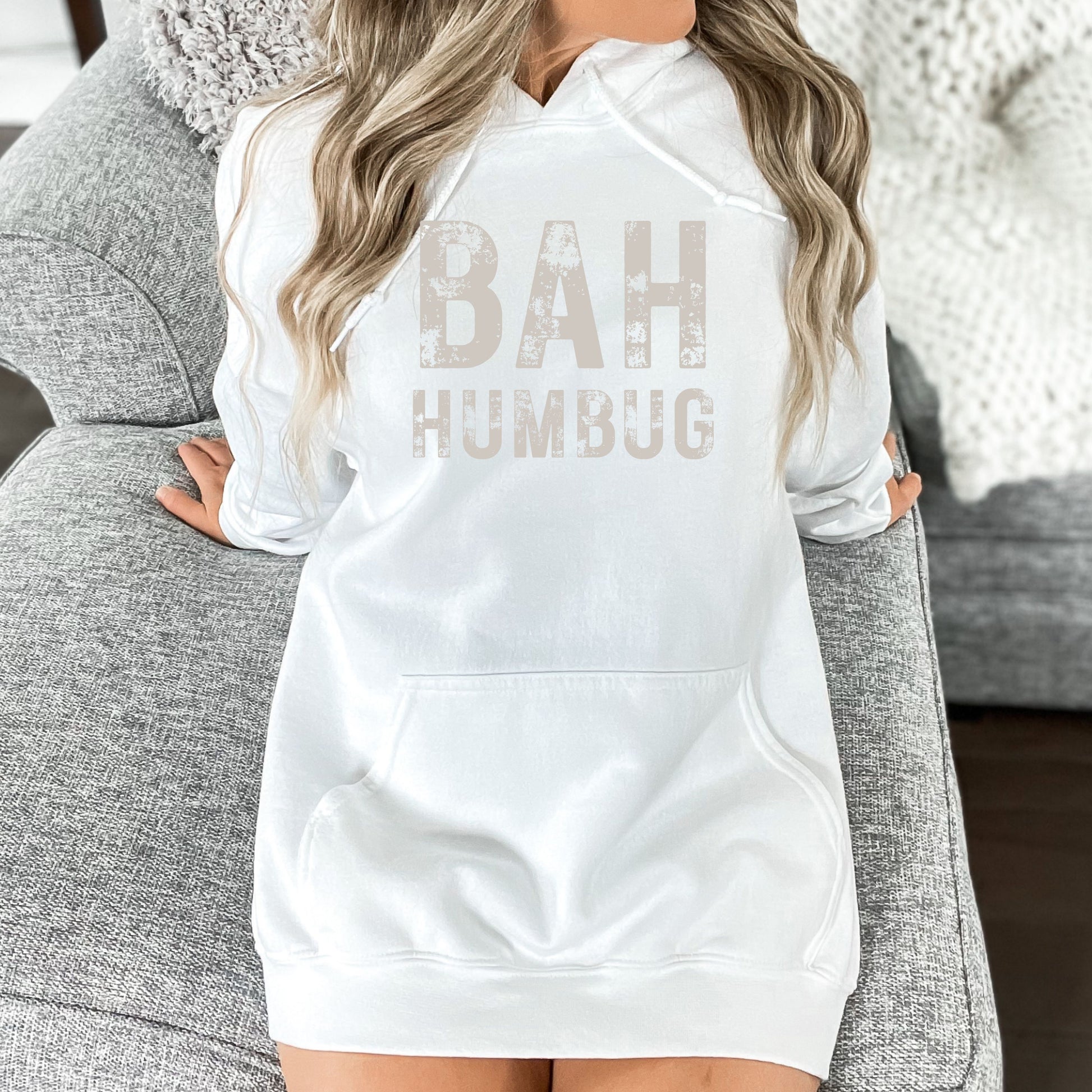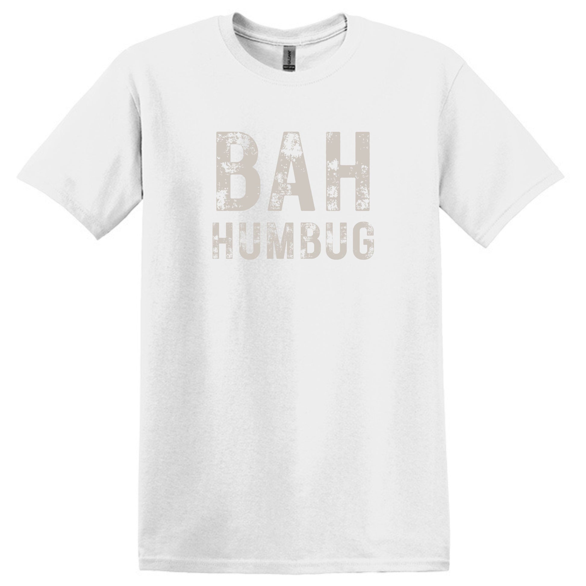Bring the perfect touch of sarcastic holiday spirit to your wardrobe with this BAH HUMBUG Distressed Top. Featuring a bold, weathered graphic that looks perfectly vintage and delightfully grumpy, this design is made for anyone who loves the season… but not too much.