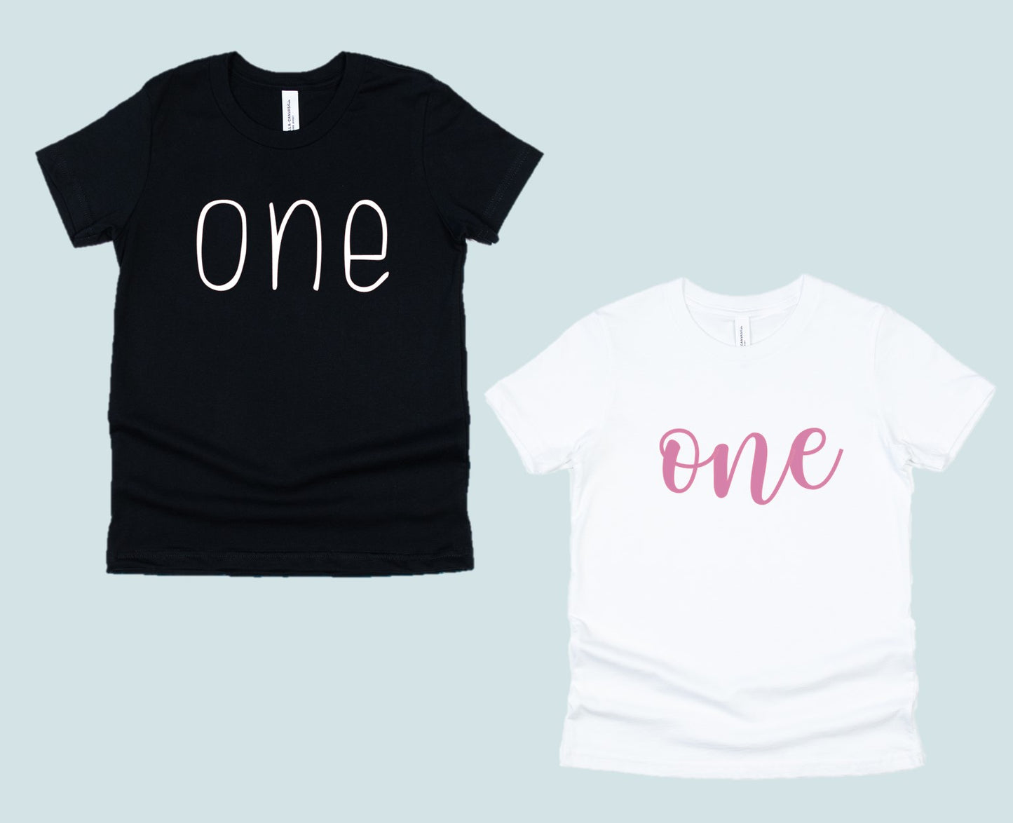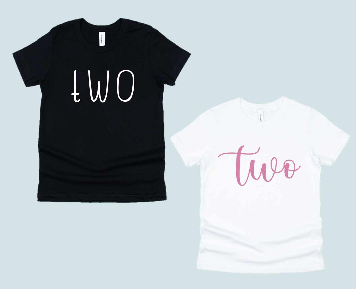 Black shirt with white print or White shirt with pink print. (glitter pink available also)